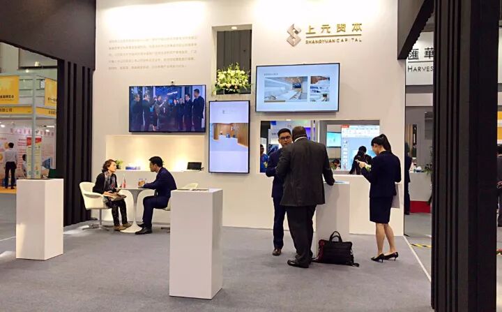 小编站在自家展位,环顾四周,不小心发现多数都是静态的场馆设计,上元资本的展位设计注重空间设计艺术情境化构建 ,采取静态情境构建和动态情境构建相结合,静中有动,动中有静。整个展位外框内置向上移动的LED灯带,象征着蓬勃向上。