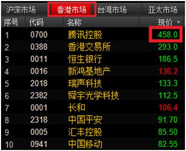 再来看一下港股市场中,股价排名前十的股票: