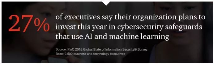 普华永道认为,网络防御将是很多公司使用 AI 的第一次尝试。进一步刺激公司接受 AI 的地方在于数据需求。27% 的公司高管称其公司今年计划在使用 AI 和机器学习进行网络安全保障方面进行投资。