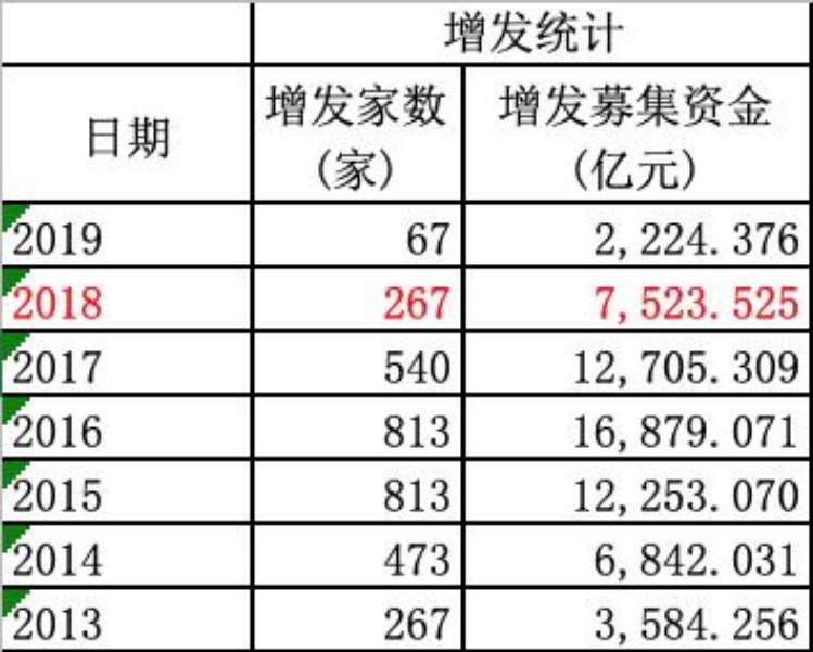 在一系列收紧条件下,2018年增发规模出现断崖式下跌。